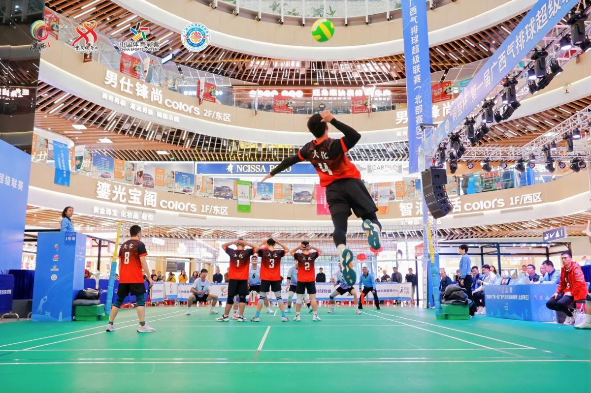据悉,此次赛事在原广西城乡万人气排球赛基础上创新升级,融合铜鼓、绣球等民族元素,构建“赛事+文旅+经济+N”发展新模式,旨在打造本土标杆性体育IP。北部赛区响应“体育赛事三进”号召,除在贺州体育馆外,还特别在缤纷环球城商圈设置赛场,将比赛植入商业核心区,打破了常规体育赛事的空间局限,为市民呈现了一场集观赏性、体验性和参与性于一体的气排球盛宴。同时现场配套设置中国体育彩票、文旅景区、体育用品等互动展位,将赛事活动“流量”转换为商业消费的“留量”,为城市生活和经济发展注入了全新动能。