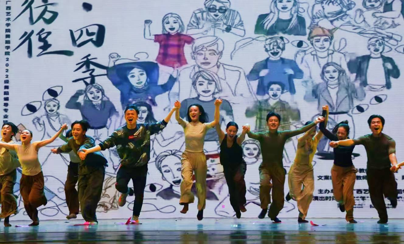演出中,众多作品扎根广西本土与中华优秀传统文化,如《敲响幸福年》《月洒金滩》《瑶·晒》《循野》《车鼓阵》等,通过对民族民间舞蹈元素的创造性转化,展现出青年学子对文化根脉的传承。东盟文化、多民族艺术形式的融入,也体现了学院在跨文化教学与艺术交流上的开阔视野。