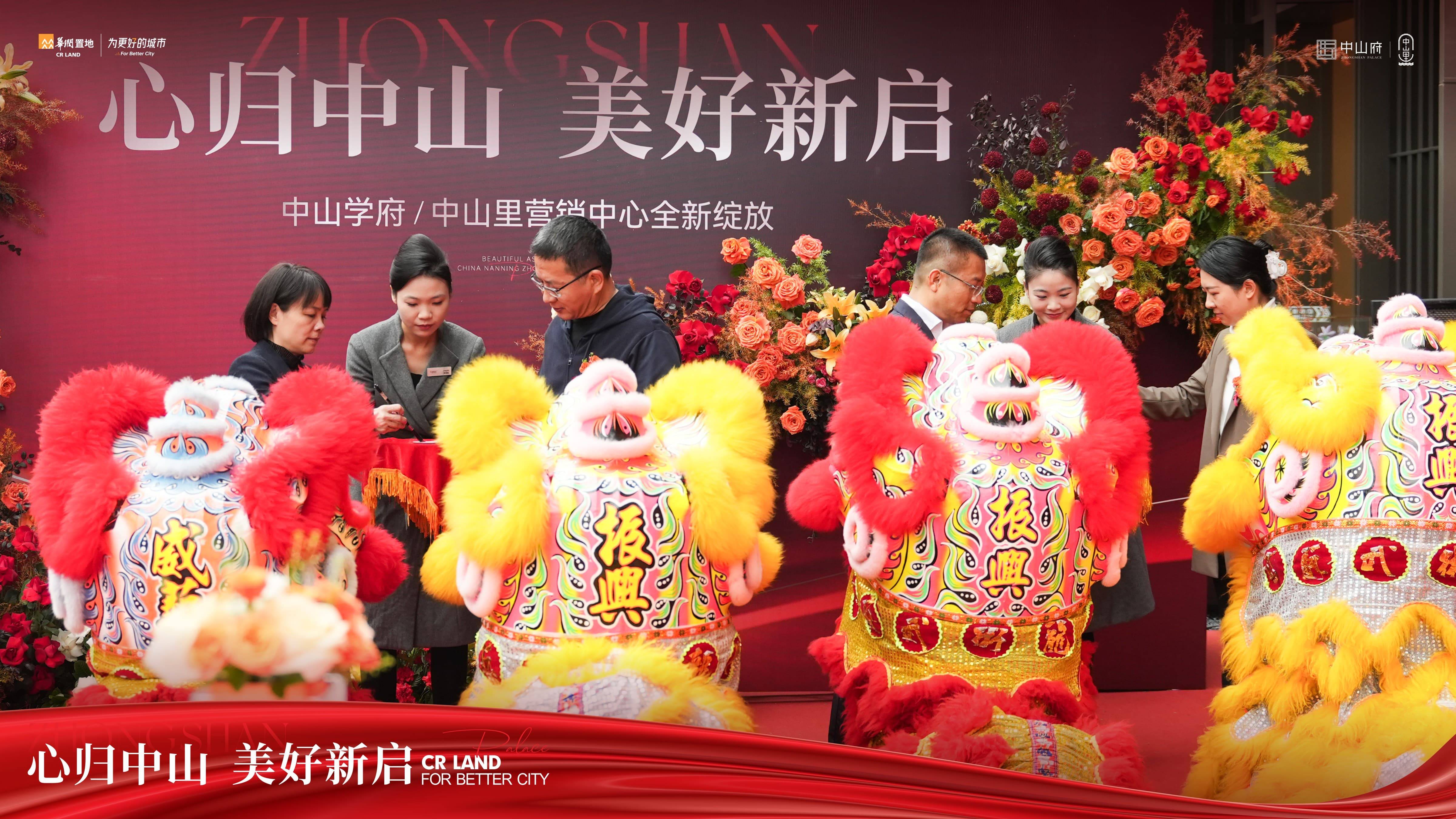 在现场宾客的见证下,华润置地中山府项目各领导携手为中山府全新营销中心亮相进行了醒狮点睛,祥狮经点睛之后栩栩如生,象征着祥和美满。