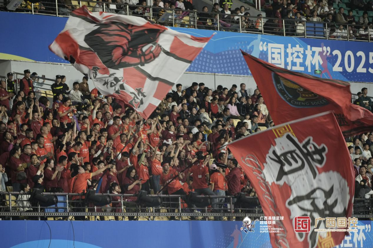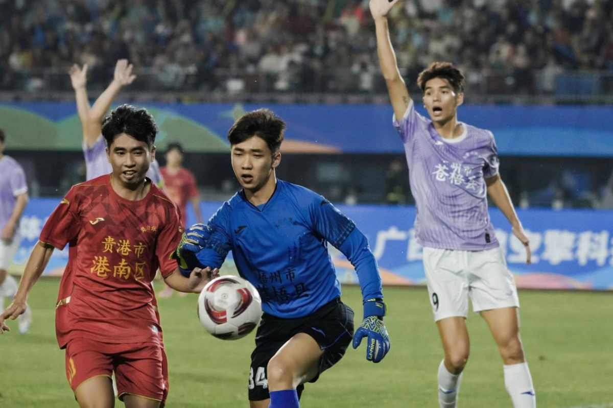 揭幕战由贵港市港南区足球队对阵梧州市苍梧县足球队。在主场球迷制造的热辣声浪中,双方奉献了一场高水平较量。根据赛制,对阵双方90分钟内分出胜负,胜队获得3分,负队积0分,若战平则直接进入点球决胜,胜队获得2分。最终,凭借守门员的神勇发挥,主场作战的港南队4∶3胜出。