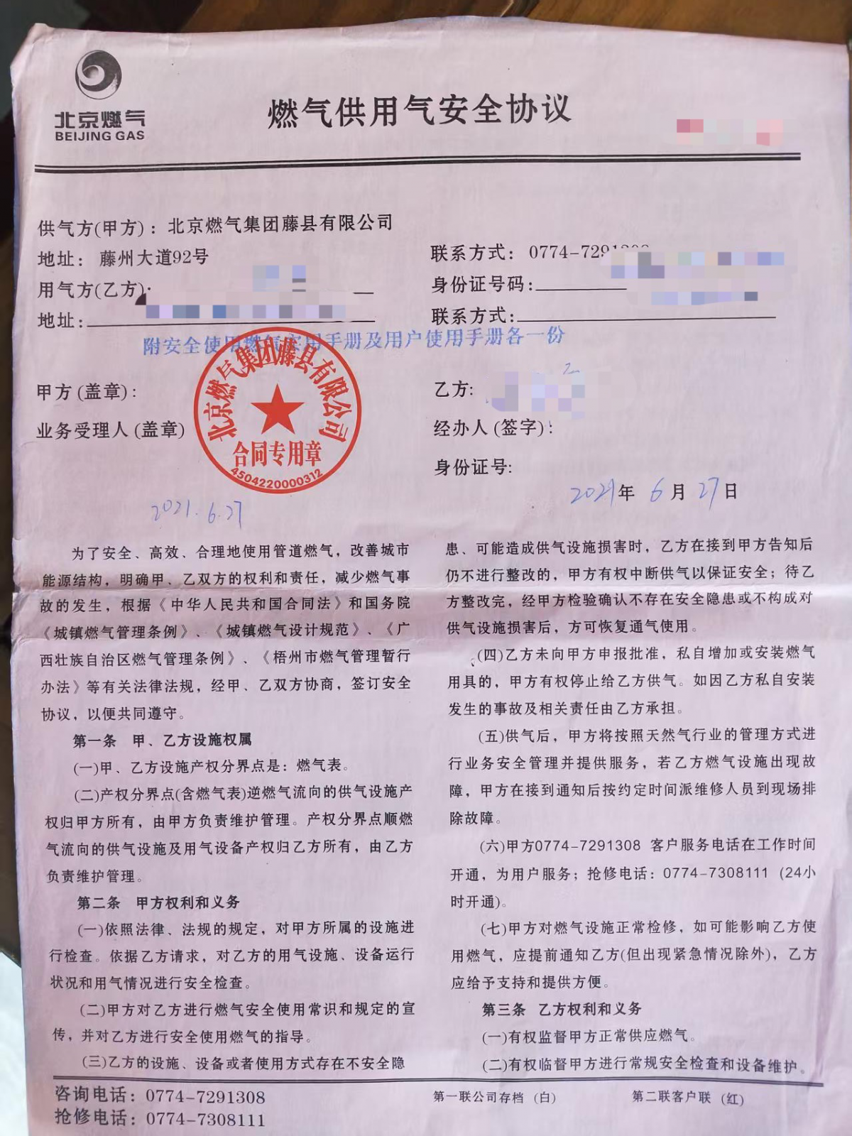 而藤县市场监管局曾在一份批文中回复,2018年1月1日后建设或销售的小区,燃气工程安装费由建设单位缴纳。藤县住建局也有批文表示,过渡期历史遗留问题中,费用未列入开发成本的,由业主承担,并需在购房合同中明确。