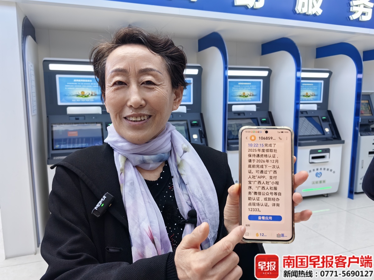 当天在南宁市社会保险事业管理中心星光管理部办事大厅,退休老人王薇现场就拿出手机体验了“电话智能养老认证”。“我以前都是等子女在身边时让他们帮忙操作认证的,如今打个电话就能认证,真的很方便!”王薇说。