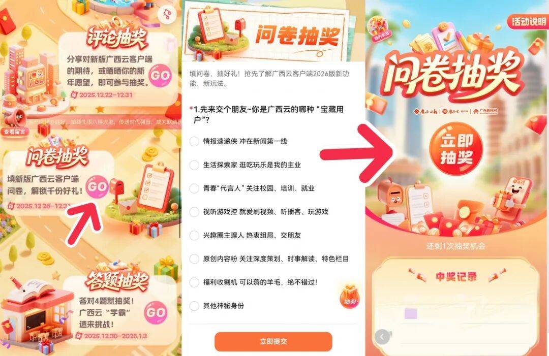 填问卷就能抽,中奖率拉满