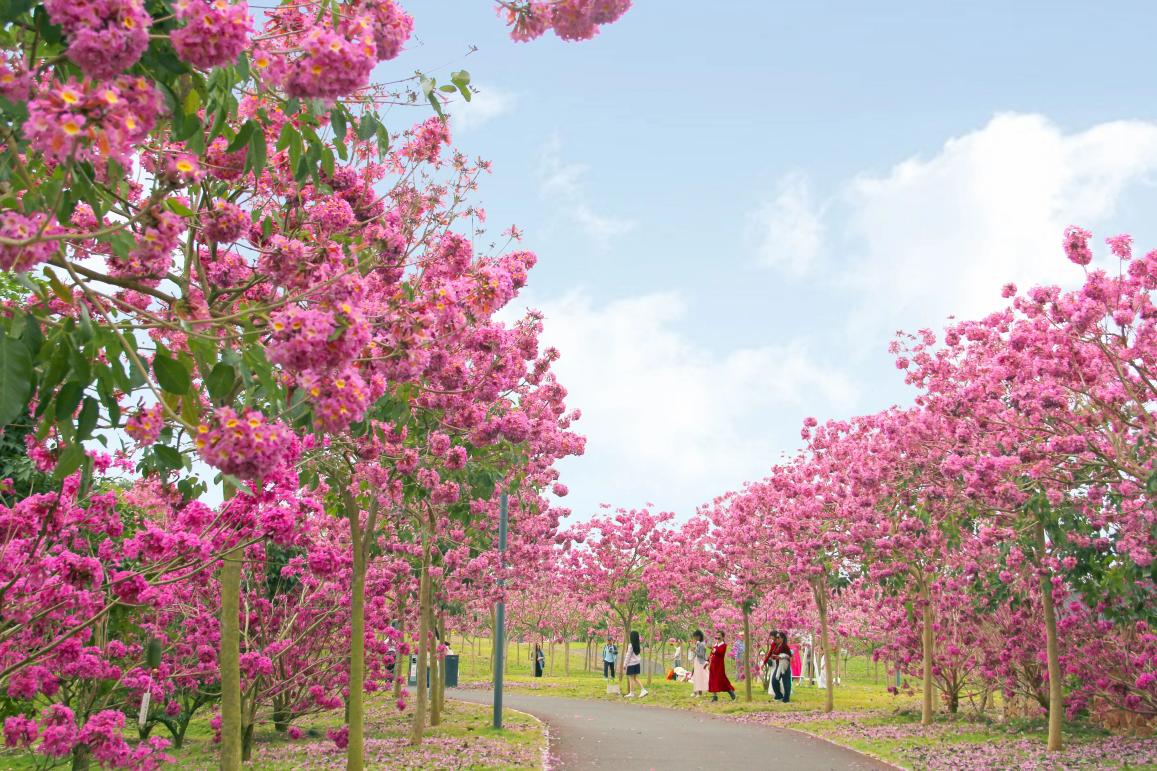 2026年1月1日—3日,游客在南宁园博园就可以一键解锁“飘雪”与花海的双重浪漫。沈阳园、太原园及晋中园片区将定时飘落“雪花”,将冬日的诗意与梦幻拉满。同时,第二届紫花风铃季处在盛花期,满园粉紫花球缀满枝头,正是出片打卡的好时节。