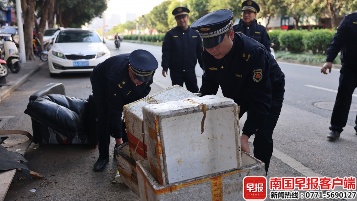 江南区综合行政执法局江南大队二中队负责人丁创辉介绍说,“这乱象一直反反复复,持续了一年多”。这一次彻底清理乱丢的杂物,还居民一条整洁畅通的道路。