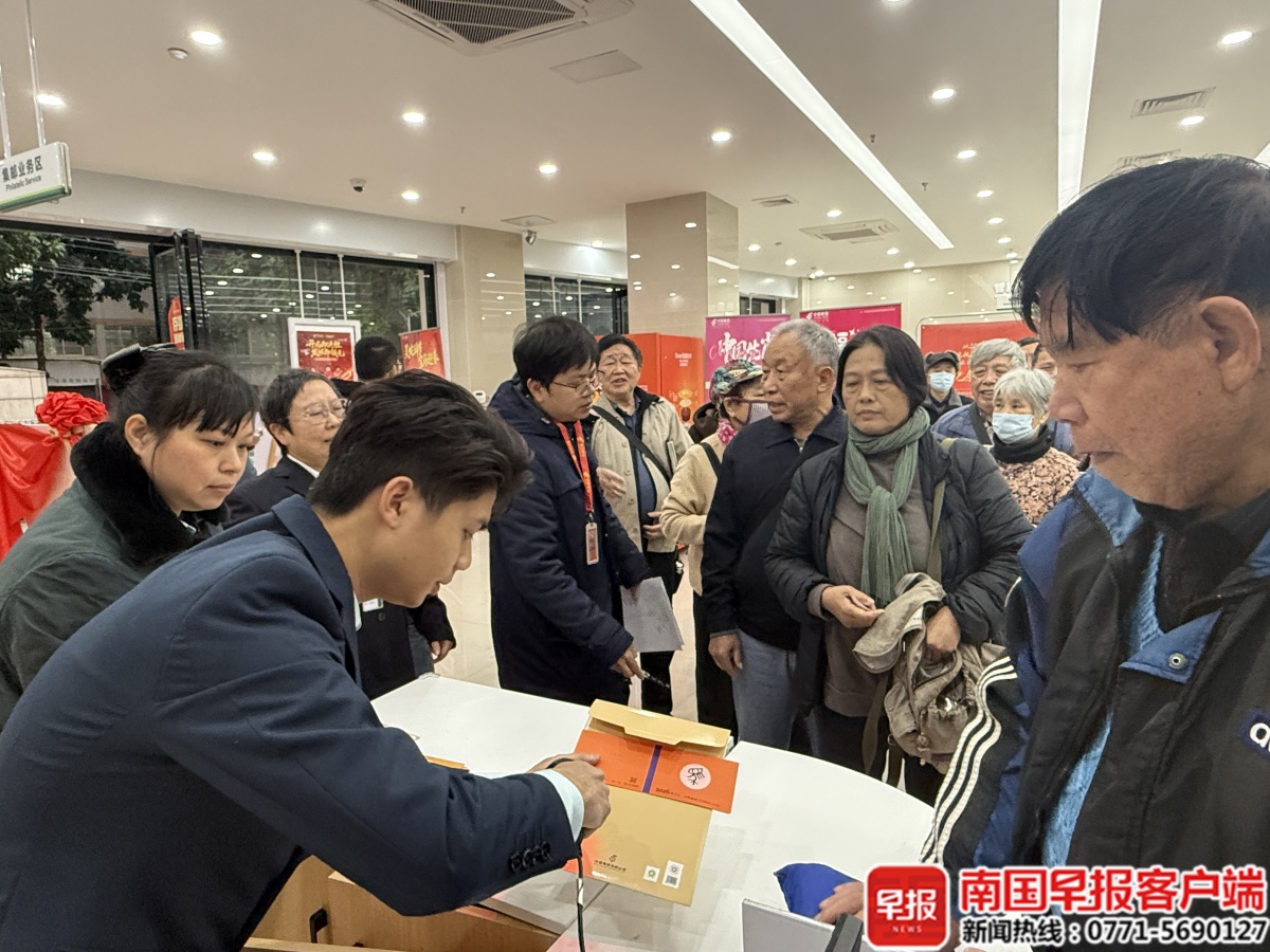 当天上午9时,记者在青秀区保爱路邮政大厦看到,前来购买邮票的集邮爱好者们排起了长队,只为抢先一睹特种邮票的真容。