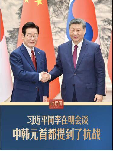 1月5日,国家主席习近平同韩国总统李在明举行会谈。习近平指出,中韩应当坚定站在历史正确一边,作出正确战略选择。会谈中,两国元首都提到了80多年前的抗战。