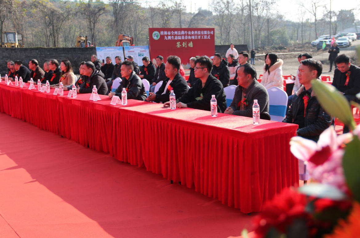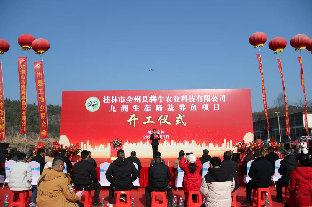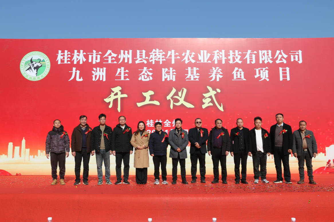 1月7日上午,桂林市全州县黄沙河镇彩旗招展、气氛热烈。全州县犇牛农业科技有限公司九洲生态陆基养鱼项目开工仪式在此举行,标志着这一县级重点农业科技产业化项目正式步入建设阶段,开启了当地渔业向工厂化、智能化、生态化转型升级的新篇章。县相关领导、部门负责人、企业代表及媒体齐聚现场,共同见证这一推动农业现代化、助力乡村振兴的重要时刻。