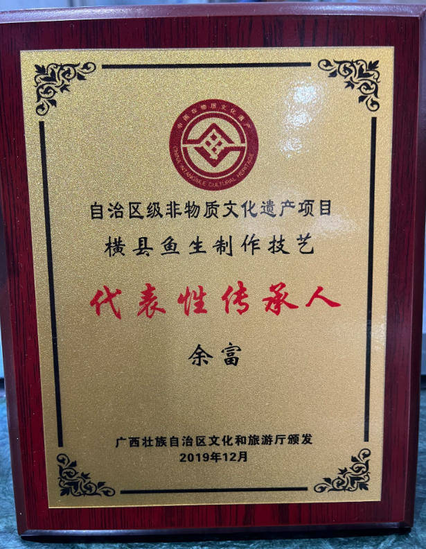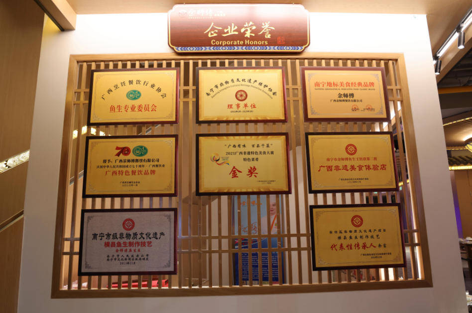 从大排档到酒店主厨,再到多次创业开办加工店、大排档,余师傅的脚步始终没离开过鱼生这个行当。2012年,他在城司北路开出“余师傅鱼生王酒楼”,凭借精湛的技艺和诚信经营,成为横县鱼生的一张名片。如今,他不仅是广西余师傅餐饮有限公司总经理,还担任广西烹饪协会鱼生专业委员会主席,将横县鱼生技艺带向了更广阔的平台。