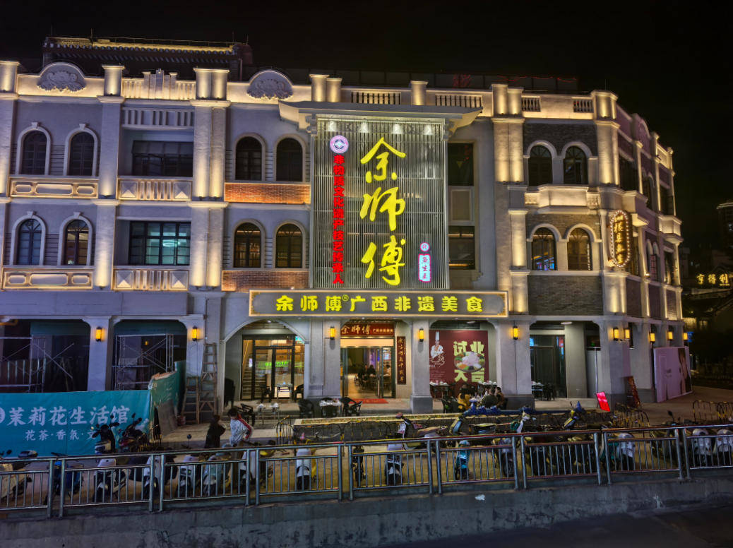 傍晚时分,当南宁三街两巷历史文化街区的灯火渐次亮起,一家广西地道非遗美食店便热闹起来,这家在今年元旦开业的余师傅鱼生王酒楼里,服务员穿梭忙碌,空气中飘满鱼鲜与香料的复合香气。