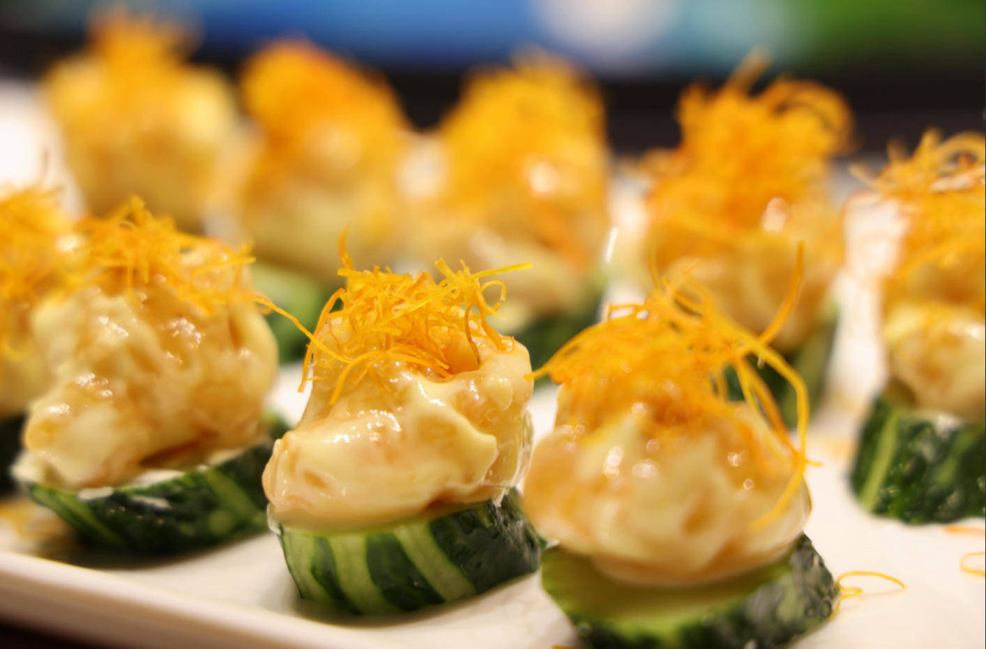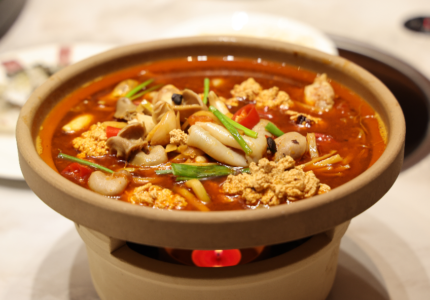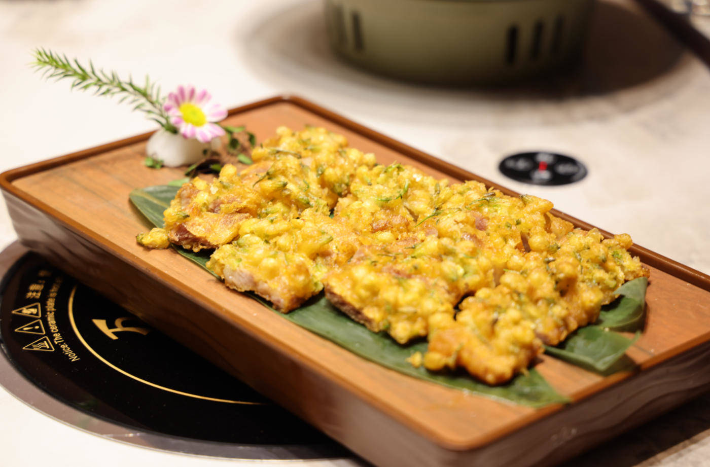新店开业当天,除了招牌鱼生,余师傅还推出了多款融合桂味的特色菜品。茉莉花蒸陶圩水晶鸡刚端上桌,淡淡的茉莉花香就先一步钻进鼻腔,鸡肉滑嫩不柴;茉莉花香酥肉外酥里嫩,咬开后花香与肉香交织,堪称味觉惊喜。奇香窝蛋肥牛、脆皮芥末明虾球等创新菜品备受年轻食客青睐,而香煎横州大棕、全州醋血鸭、老友风味鱼杂等经典桂味,则让不少食客吃出了家乡的味道。