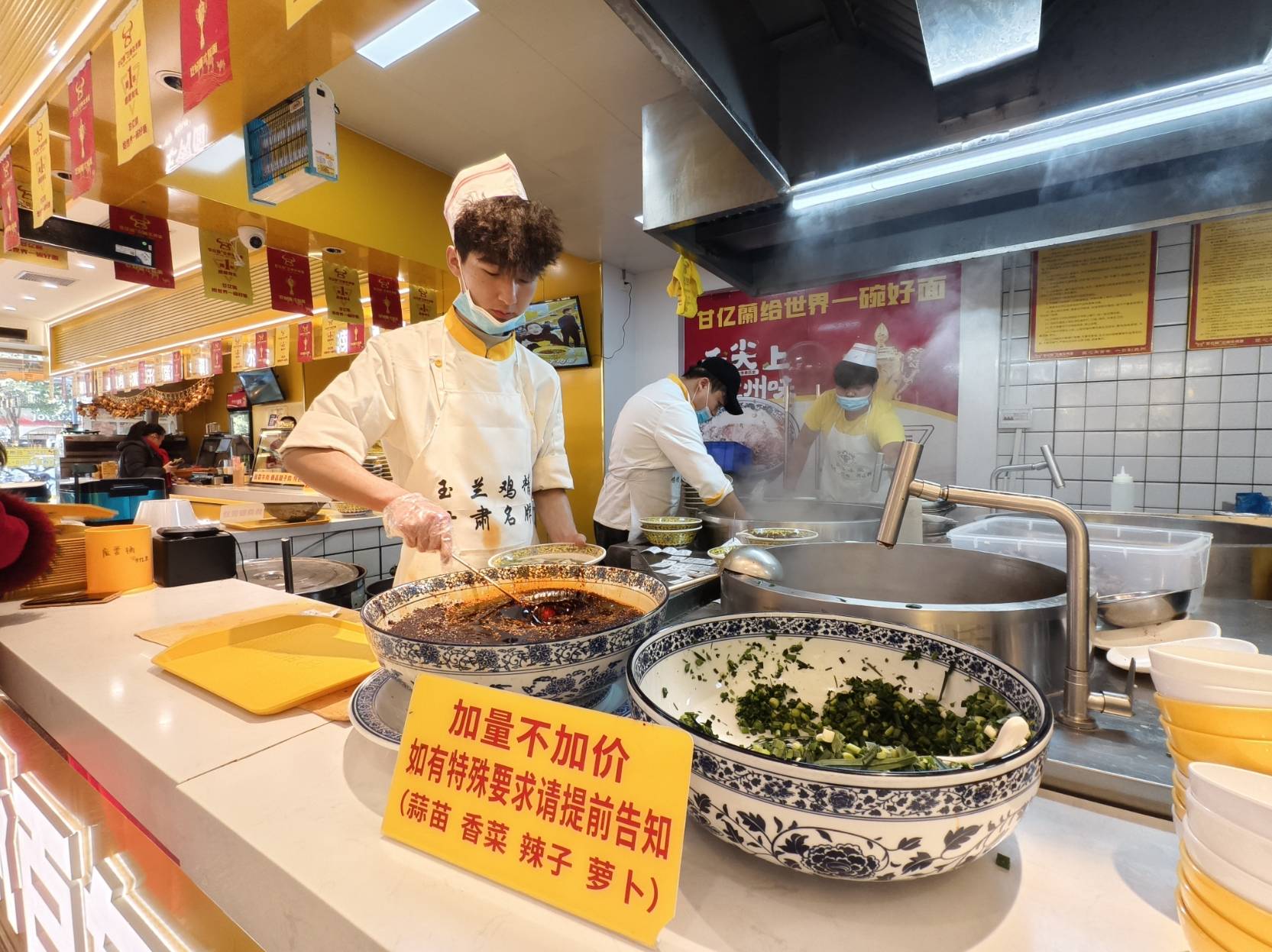 能在饮食文化多元的南宁站稳脚跟,离不开甘亿蘭对传统工艺的坚守。“甘从陇原来,亿碗见真功”,品牌始终秉持“以匠人之心,琢时光之影”的理念,从面粉、牛肉到香料,均选用来自西北的优质食材,确保每一碗面都保留正宗的兰州风味。拉面师傅全部来自兰州,拥有多年从业经验,对拉面的粗细、煮面的时长、汤底的浓度都有着严格的把控。“我们就是要把最地道的兰州牛肉面带给南宁市民,让大家不用远行就能领略浓浓的西北风情。”门店负责人介绍,一年来,门店累计接待顾客超15万+人次,不少顾客还成为了回头客,用口碑为品牌赢得了良好的声誉。甘亿蘭兰州牛肉面品牌主理人莲花。图片均由南国早报全媒体记者 雷小琴摄