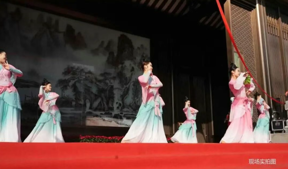 一曲以宋代插花艺术为灵感的开场舞《花供今朝》翩然上演,曼妙舞姿引领众人梦回风雅宋世。随后,主持人隆重介绍到场嘉宾,两位重要领导先后登台致辞,为项目启幕寄予厚望。