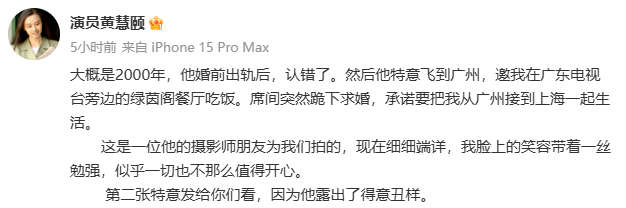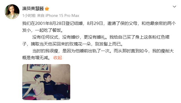 此前,黄慧颐发文: