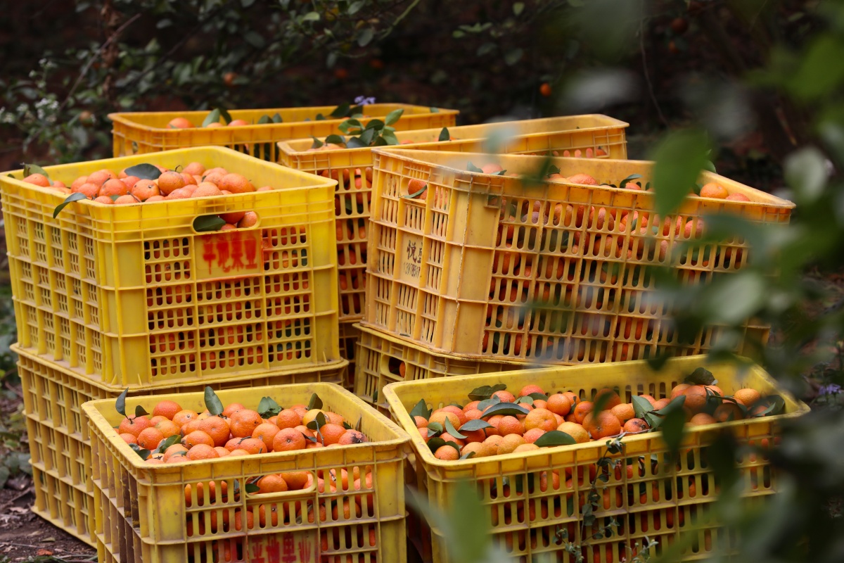 东平镇良荔村的果园里,堆满了刚采摘下来的砂糖橘。
