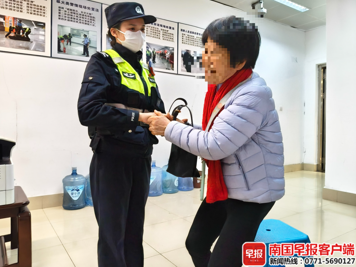 当天上午,75岁的王女士在南宁火车站搭乘地铁1号线至南宁东站,出站时发现随身携带的黑色挎包不见了,包内有1600元现金及临时身份证。她立即返回火车站,向南宁市公安局地铁分局火车站警务室求助。