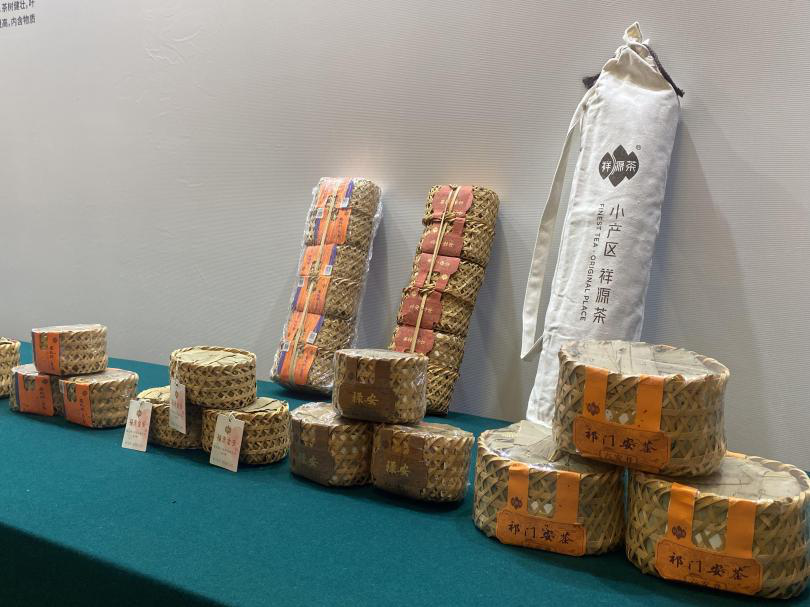 此次茶会的主角——祁门安茶(又称六安茶)与广西六堡茶,均为中国黑茶中的历史名品。前者源自安徽祁门的青山秀水,后者扎根广西梧州的温润沃土,虽相隔千里,却有着诸多共性:都承载着“越陈越香”的时光密码,兼具品饮与养生双重价值,更曾沿着相似的“侨销”路径香飘港澳、远播南洋,成为连接海内外茶友的味觉纽带。这场“六六茶会”,既是两大名茶跨越山水的“深情对话”,更是两地茶文化、茶产业携手共赢的重要见证。祥源安茶展示的多款产品。