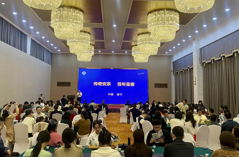 祁门安茶跨越千里,与广西六堡茶在绿城南宁相遇。1月17日下午,“传奇安茶 百年圣香”祥源安茶2026全国城市(南宁)推荐会暨“六六茶会”,在南宁荔园山庄国宾馆顺利举行。茶香袅袅中,南北茶界人士齐聚,共同展望黑茶品类创新推广与茶文化融合发展的新蓝图。这场活动不仅提升了安茶在华南市场的品牌影响力,更为祁门与广西两地茶产业合作铺下基石。活动现场盛况。