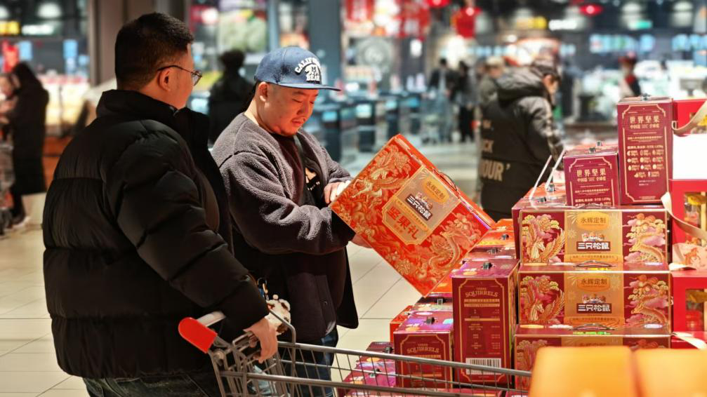 永辉北京鲁谷店的礼盒专区,一位年轻顾客正在仔细比较两款坚果礼盒。她最终选择了永辉与森宝联名的“骏马献瑞”礼盒,“设计有年味,品牌也熟悉,价格很合适”。不远处的服务台前,工作人员正熟练地为顾客选购的草莓和车厘子进行礼品包装。红色礼盒配上金色丝带,旁边还有一张手写的祝福卡片——这是永辉今年新增的“手写祝福”服务,让标准化商品多了份人情温度。