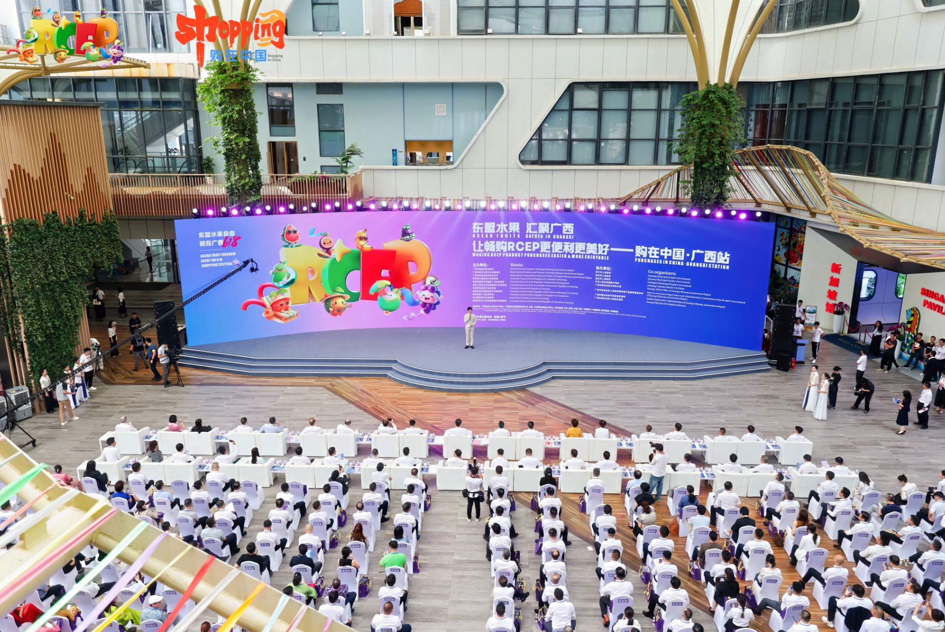 东盟水果 汇聚广西 让畅购RCEP更便利更美好——购在中国·广西站活动现场。自治区商务区供图