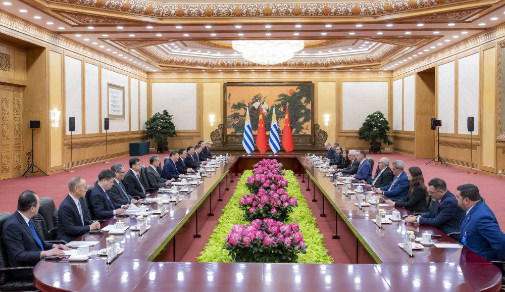 2月3日,国家主席习近平在北京同来华进行国事访问的乌拉圭总统奥尔西举行会谈。