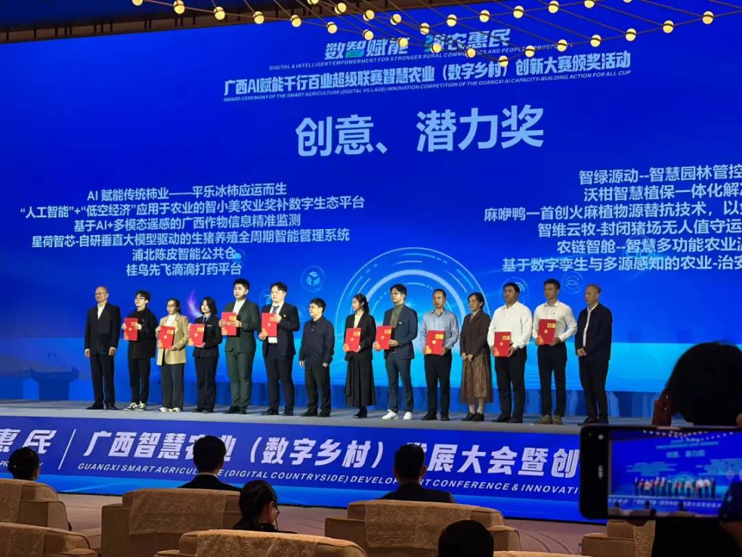 “桂鸟先飞—滴滴打药”平台项目拿到了广西“A超”农业赛道“最佳潜力奖”。受访者供图
