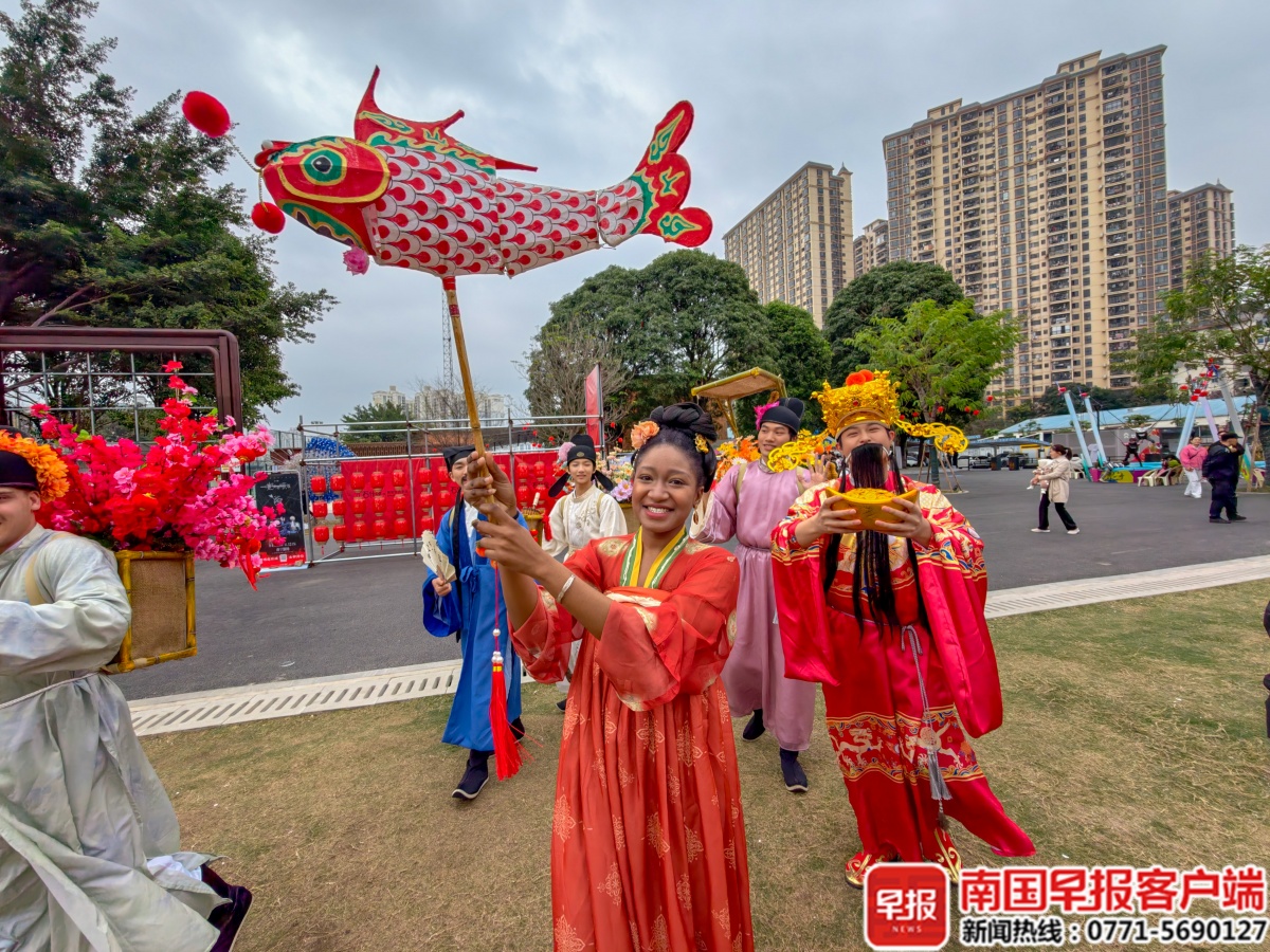 现场更有徐霞客、财神爷、梅兰竹菊四君子等NPC惊喜现身,古色古香的装扮吸引市民争相合影。“走两步就有演出,转个弯就遇惊喜,这样的新年太有仪式感了!”市民宋先生笑着说。