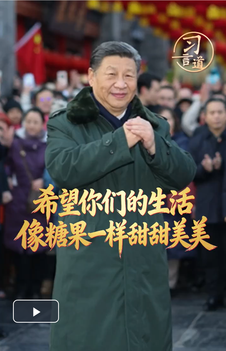 每逢春节前夕,总书记都会走到基层、百姓中间。在天津古文化街,总书记掏钱买麻花作为见面礼,送给身旁的小朋友,说“送你一份麻花”;在辽宁,总书记接下孩子们递来的糖果,亲切地说,你们的糖我收下,吃了你们的糖心里很甜。一个个亲切有爱的感人画面,充满了温情,传递着感动。