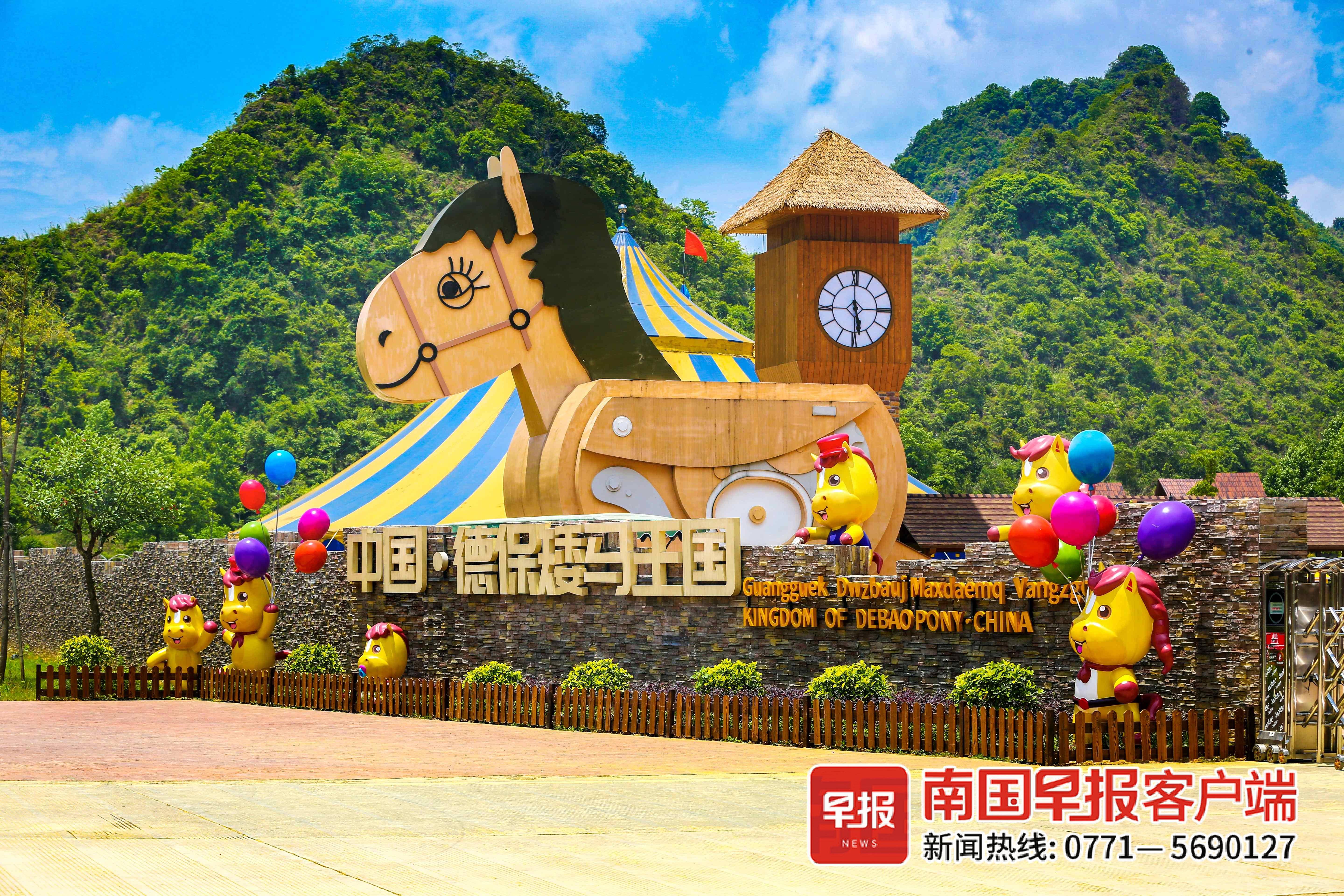 德保矮马是世界两大矮马源流之一,被誉为“马中熊猫”。它的身高只有一米左右,通常只到成年人的腰部,模样小巧可爱。在百色市德保矮马王国景区,这些矮马是名副其实的“团宠”——大门有巨型木马迎宾,小马雕塑随处可见,就连彩虹步道上也印着小马的图案。