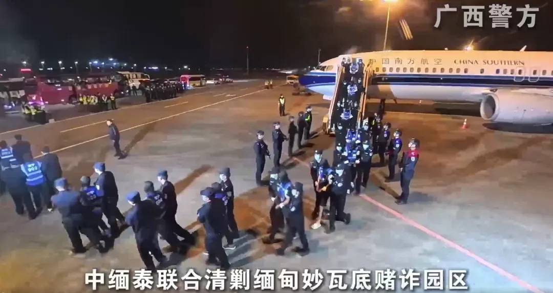 近日,按照公安部统一部署,山东、广西公安机关组织警力将近期中缅泰联合清剿缅甸妙瓦底赌诈园区行动中抓获的1500余名犯罪嫌疑人押解回国。截至目前,妙瓦底KK园区630余栋相关建筑物已被全部拆除,相关涉电诈犯罪嫌疑人均已被押解回国,联合清剿行动取得阶段性成效。【详讯】