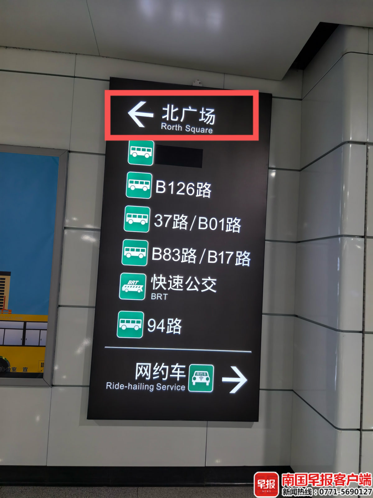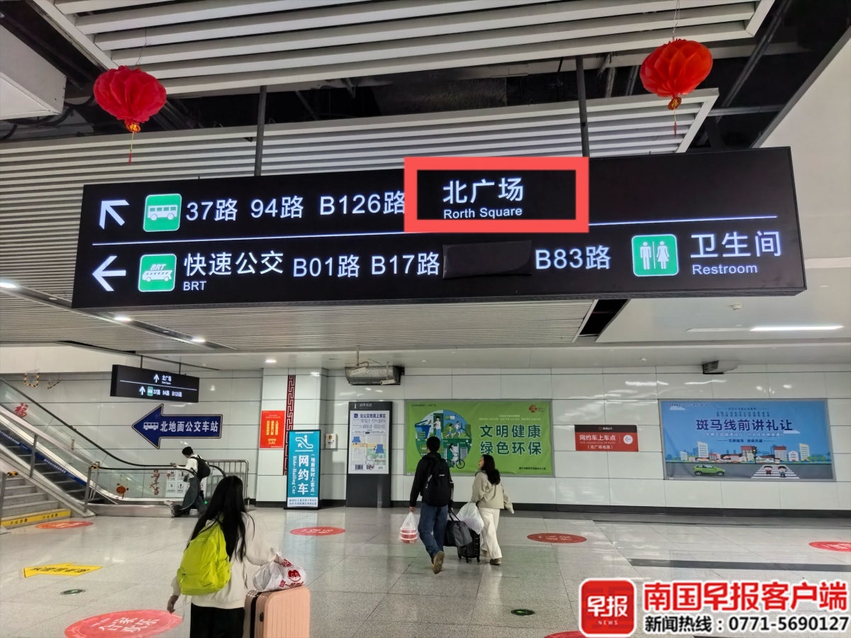 2月23日下午,南国早报全媒体记者发现多处“北广场”英文拼写确实有误。
