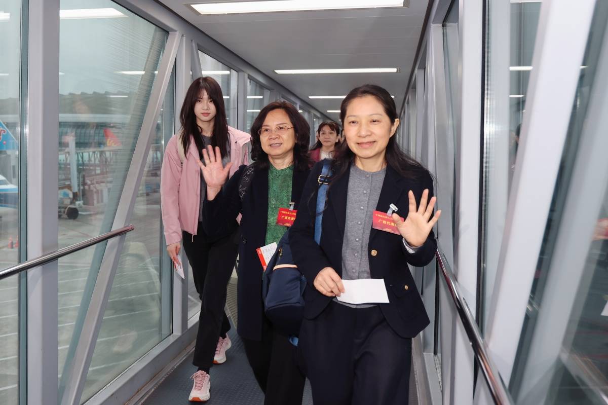 3月3日上午,在桂全国人大代表从南宁启程飞往北京,出席即将召开的十四届全国人大四次会议。广西云-广西日报记者 王希 摄