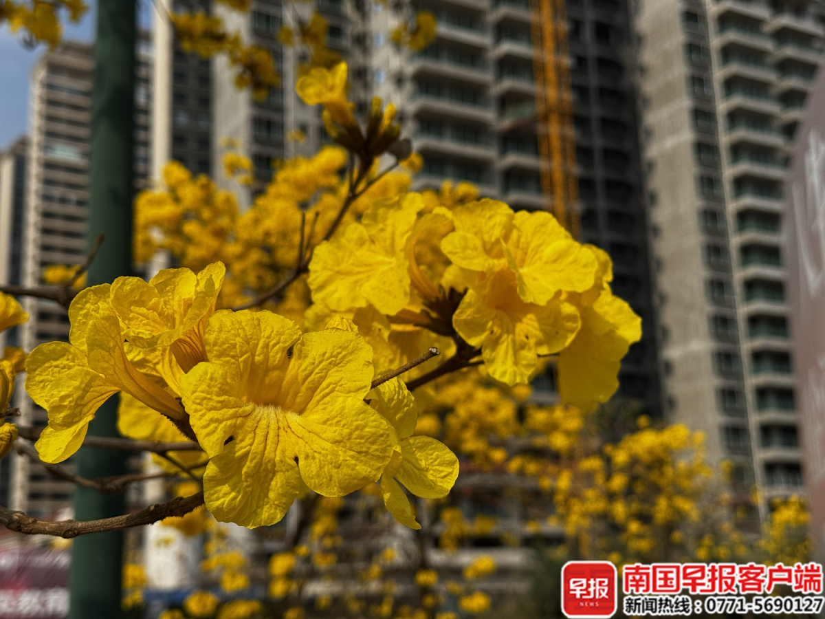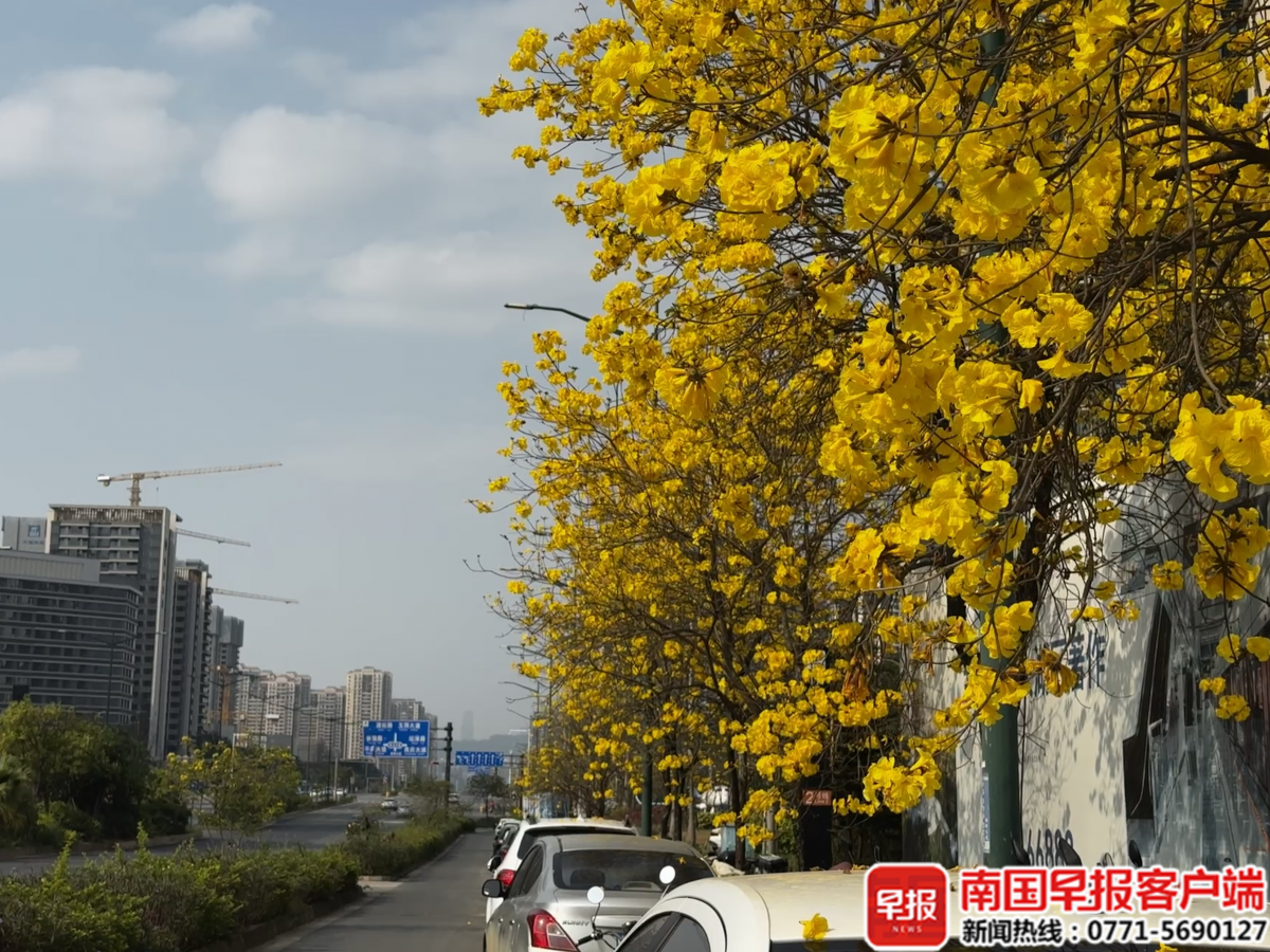 这几天,在暖阳助力下,南宁的黄花风铃木迎来盛花期,吸引不少市民打卡拍照。南宁市气象台预计,3月6日~8日,南宁仍将维持多云到晴的天气,最高气温23~25℃,计划洗晒衣物、春游赏花的市民,可以放心安排。
