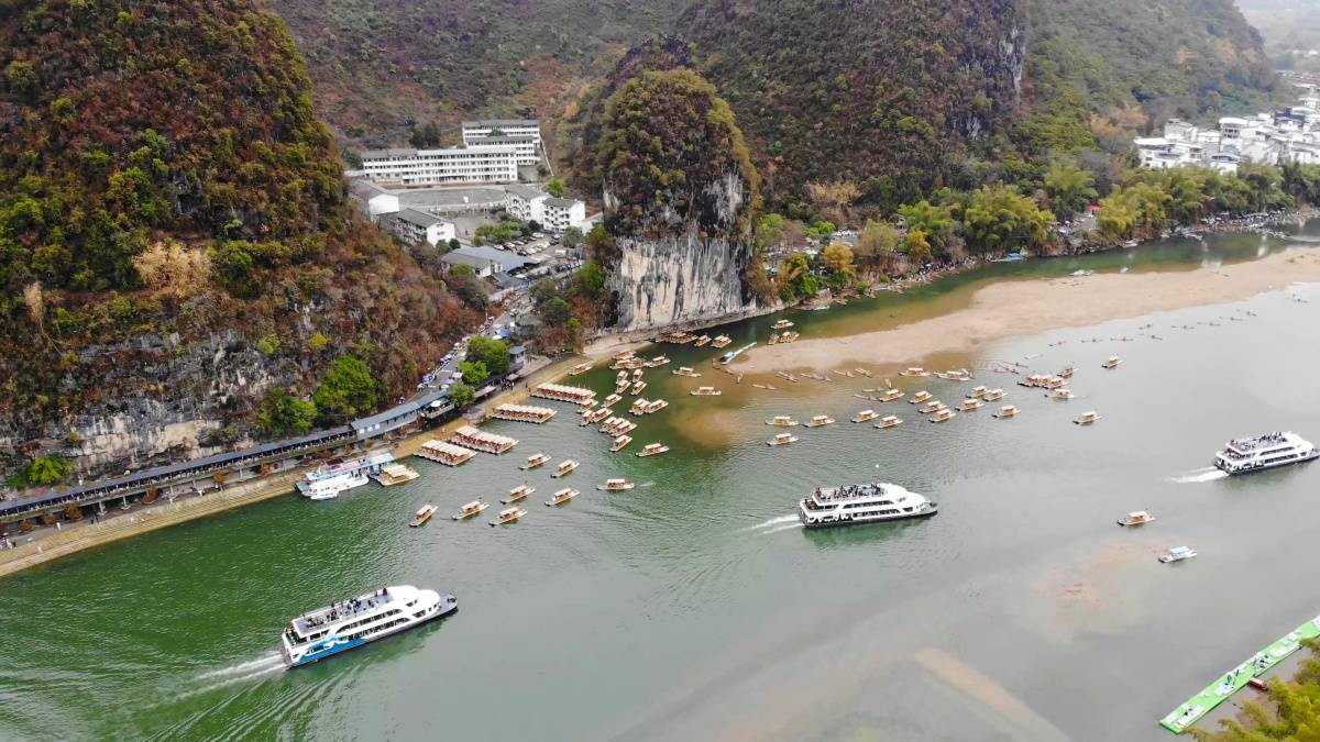 桂林阳朔的排筏和客船各行其道有序出行。莫卫华摄