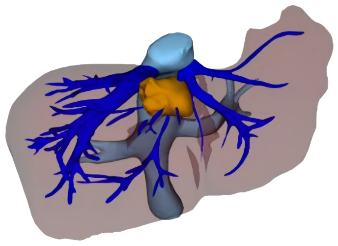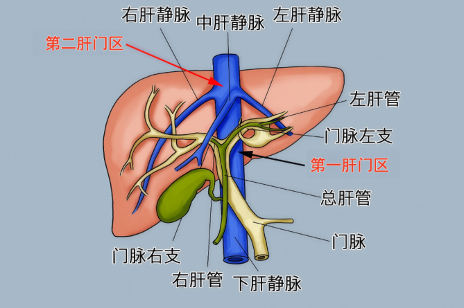 凌女士患上的是肝脏胆管细胞癌,这是一种凶险且难缠的恶性肿瘤。更棘手的是,肿瘤长在了肝脏“交通枢纽”——第二肝门区。这个位置是肝脏血流进出的关键通道,三支主要的肝静脉和下半身回流的血管都从这里经过。