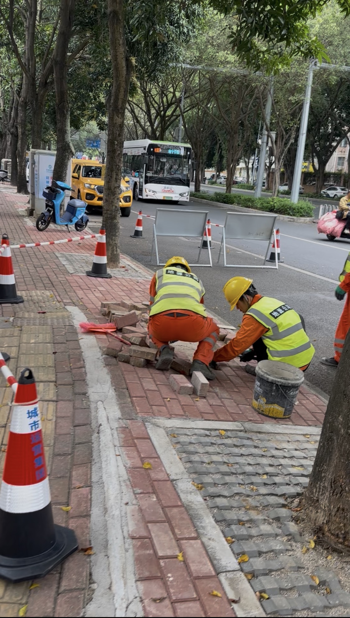 人行道旁的无用牌子被拆掉,还道路整洁。