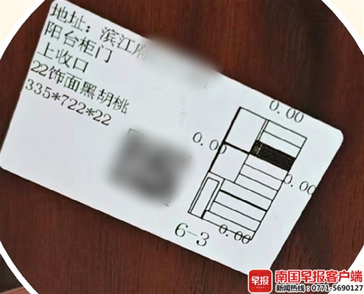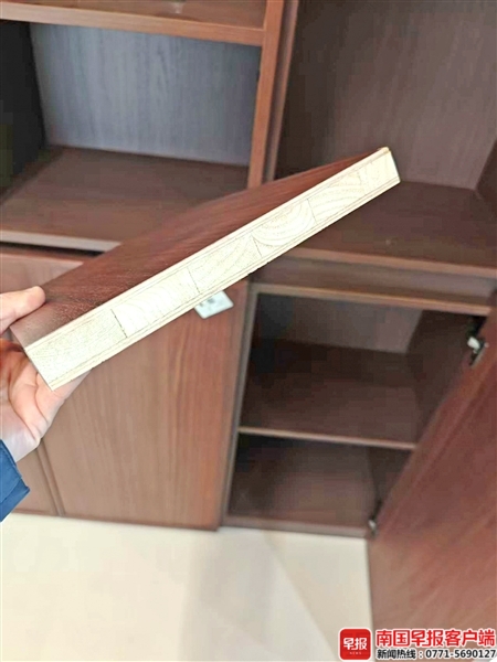 业主滕先生选购晚安家居南宁大商汇店的全屋定制产品,总价13万余元。近期安装后,滕先生发现商家提供的柜子见光板(即门板)标签均显示为“饰面黑胡桃”,不是合同约定的“黑胡桃原木”。滕先生向商家索赔,南宁市场监管部门于3月中旬对此作了调解但无果。广西木材产品质量监督检测站的专家表示,饰面黑胡桃不是黑胡桃原木,市场上类似混淆名称的现象还有不少。