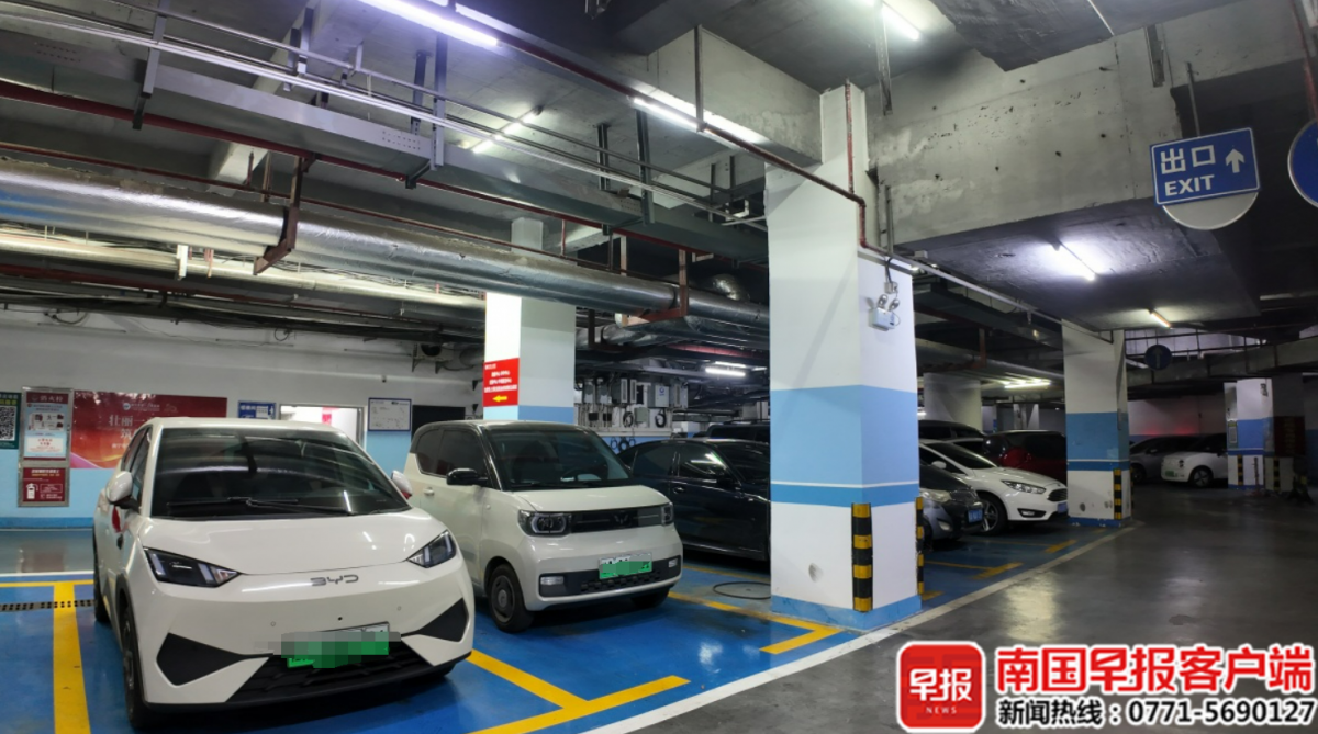 在南宁市第一人民医院地下停车场,职工停车位停满了患者的车辆。