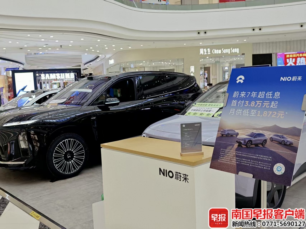 据南宁万象城特斯拉展台一名工作人员介绍,以Model 3后轮驱动版车型为例,官网售价为23.55万元,在不加装任何选配的情况下,首付7.99万元,贷款15.56万元,月供1918元,共分为84期。青秀万达广场蔚来汽车展台一名销售人员介绍,蔚来汽车推出限时7年(84期)低息金融购车方案,可享首付低至20%、年化费率低至0.49%。若选择BaaS电池租用服务,首付仅需3.8万元起,月供低至1872元。