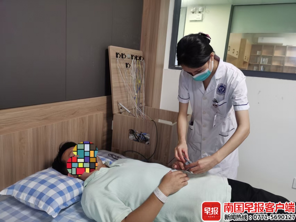 在第五人民医院,医生正在用多导睡眠呼吸监测患者睡眠状况。吴娟娟摄