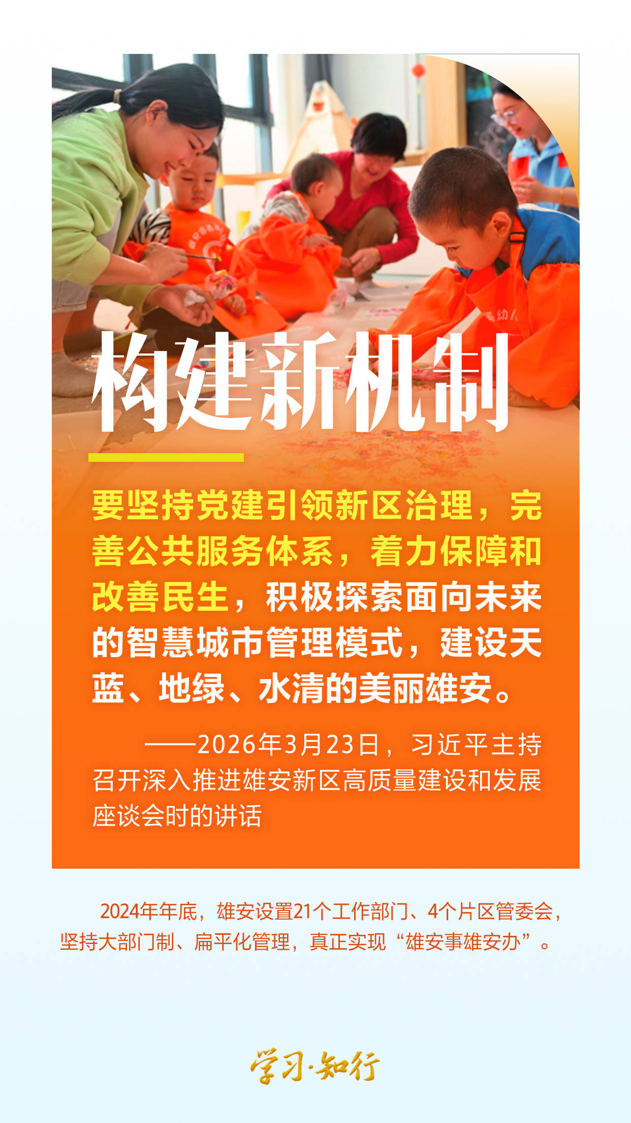 2026年3月23日,习近平总书记在河北雄安新区考察,主持召开深入推进雄安新区高质量建设和发展座谈会,强调牢牢把握雄安新区功能定位,努力建设新时代创新高地和推动高质量发展样板。