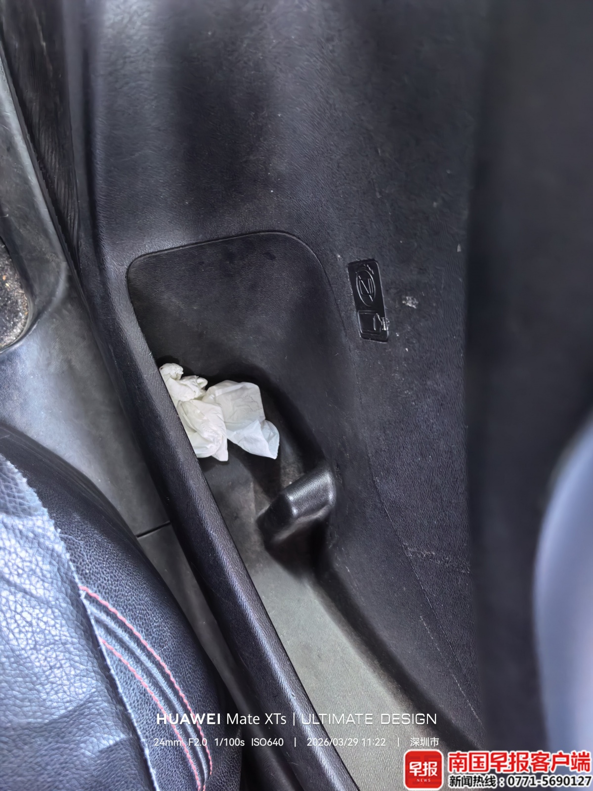 赵先生乘坐的曹操专车车厢内留有使用过的纸巾。