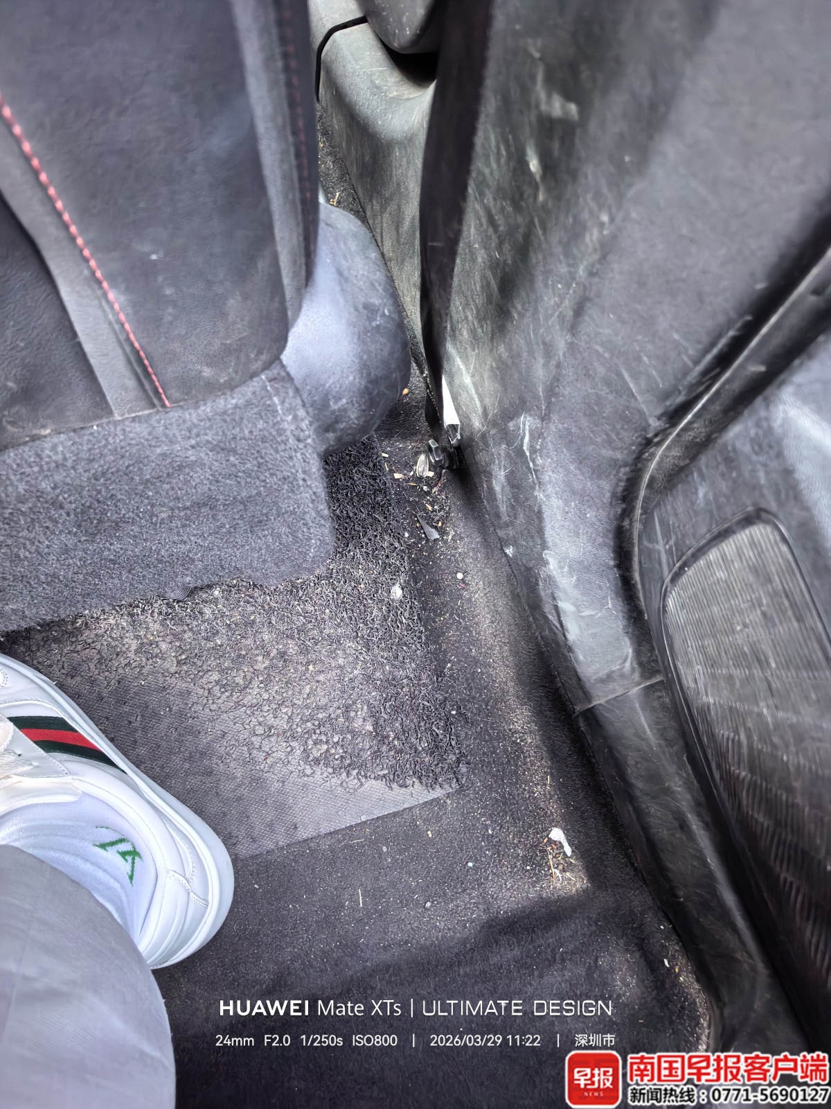 赵先生乘坐的曹操专车,车厢内环境比较脏乱。