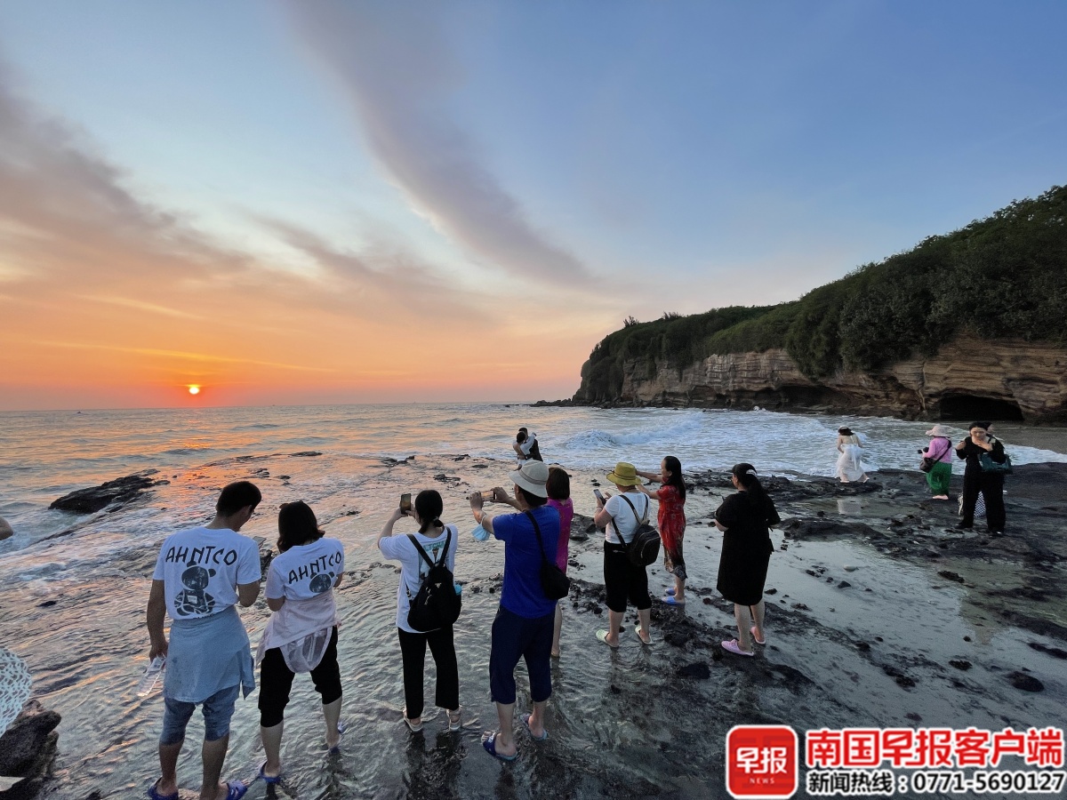 游客在涠洲岛观赏落日。