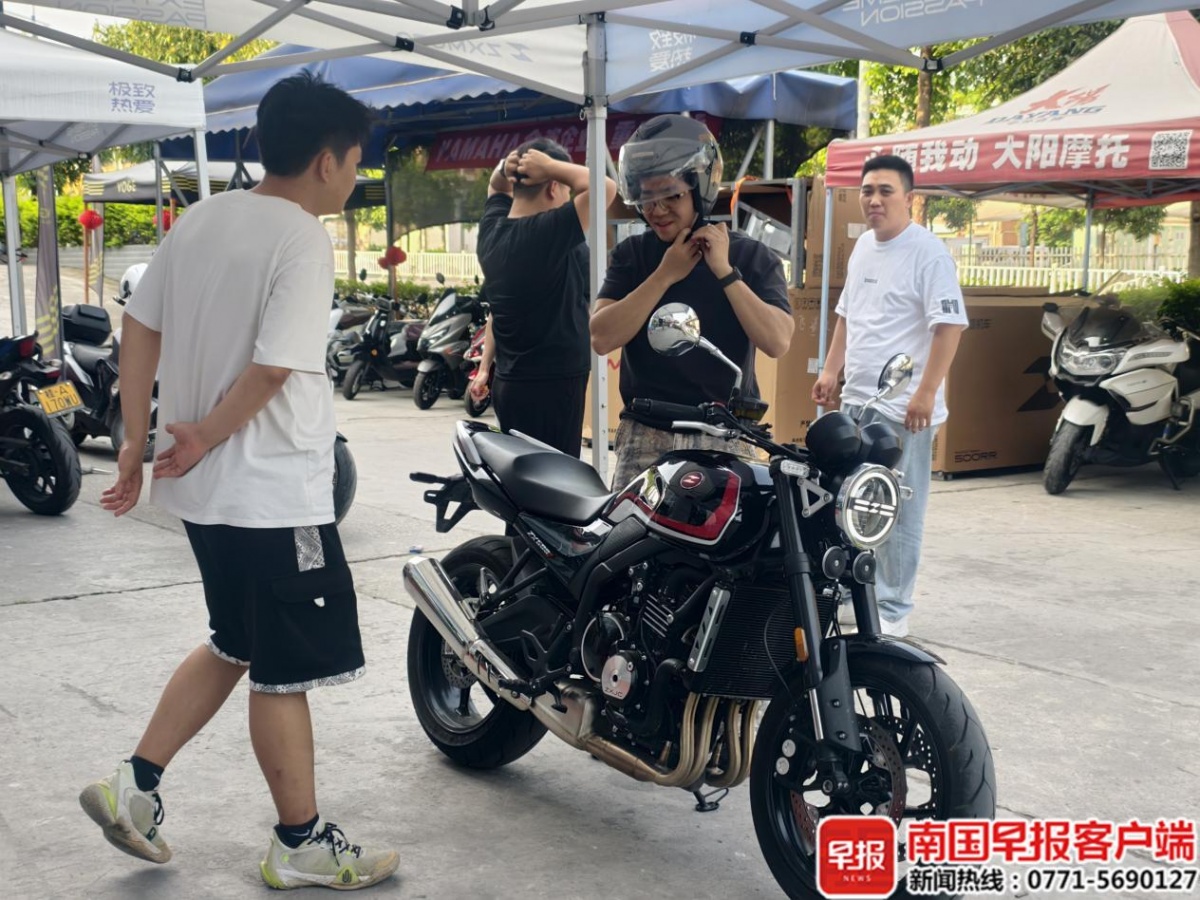目前冠军车型820RR预计4月中旬到店,500RR系列颜色齐全,带上本人摩托车驾驶证到店签署试驾协议并领取头盔、护具后,便能骑上500RR出去兜一圈。在广西艺术学院上学的小陈(化姓)特地趁假期来试驾,他迷上机车已有七八年,见证了国产车一步步的优化。体验下来,从入弯循迹性到油门响应速度,他觉得每个细节都“挺丝滑的”。