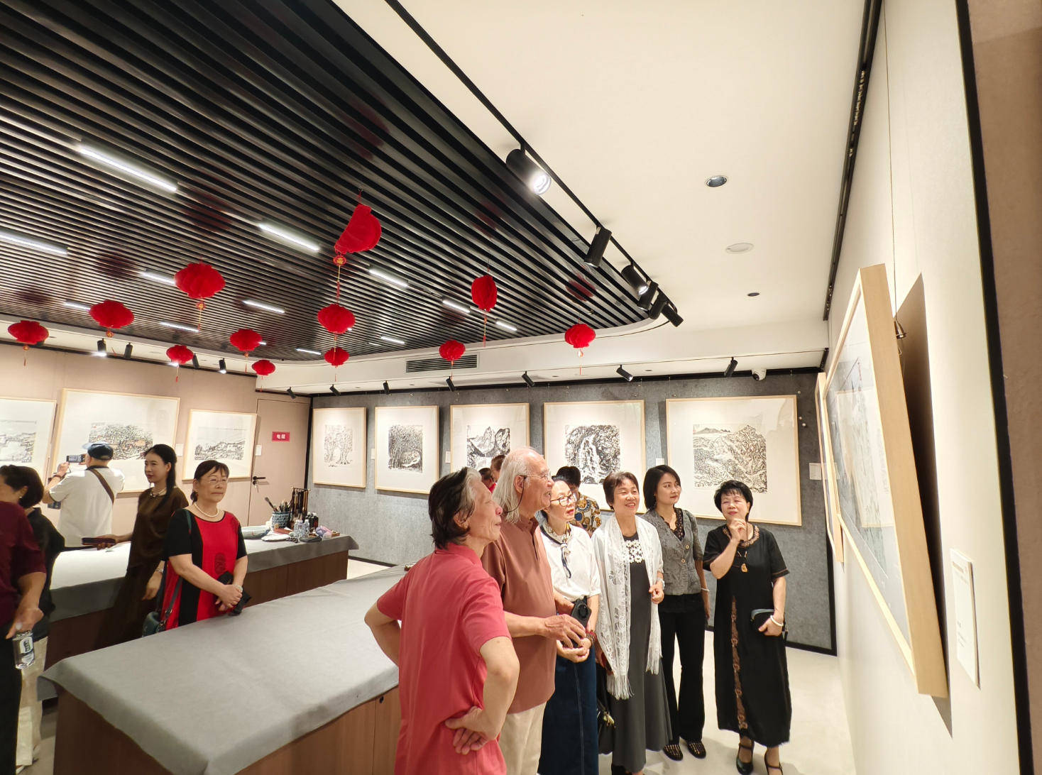 开展当日,展厅内墨香氤氲、观者如织。不少艺术爱好者、书画藏家与市民专程前来,在作品前驻足品读、轻声交流,用手机定格笔墨瞬间,现场洋溢着浓厚的艺术氛围。