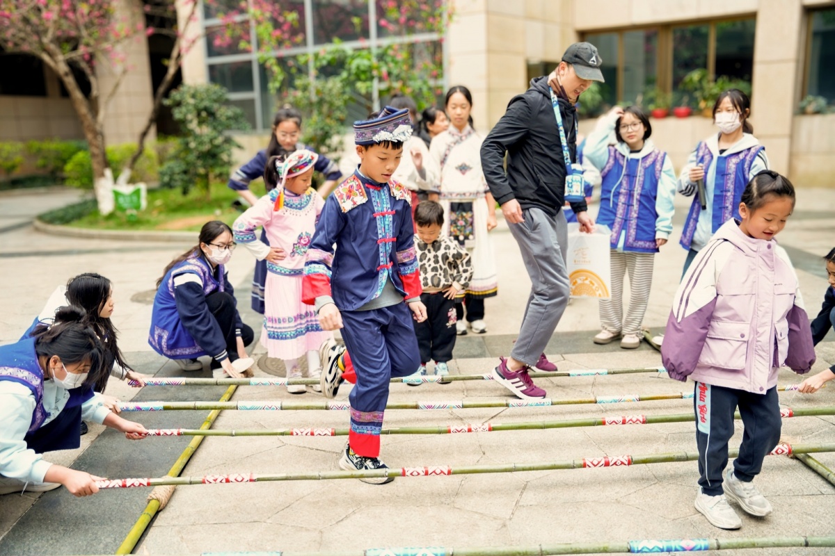 竹竿舞体验。广西民族博物馆供图