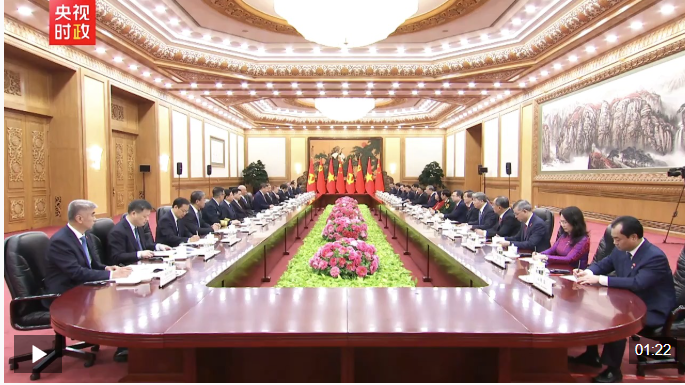 习近平指出,你当选越南国家主席后第一时间到访中国,体现了你对发展中越关系的高度重视。无论国际形势如何变化,中方始终将越南作为周边外交优先方向,愿同越方秉持初心、赓续友谊,团结协作、相互支持,高质量推进全面战略合作,加快构建更高水平具有战略意义的中越命运共同体。