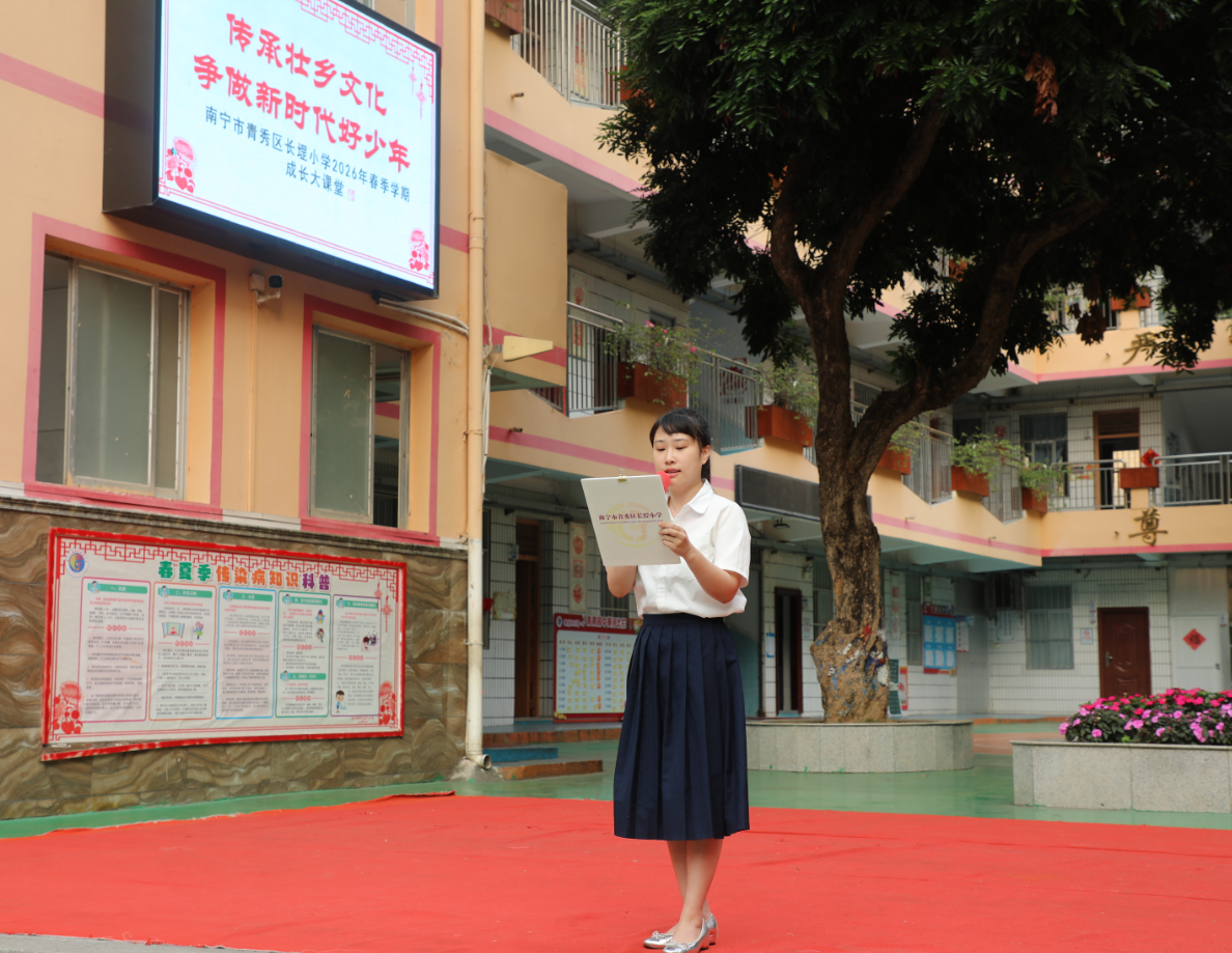 为弘扬传统文化,增强学生对民族文化的认同感与自豪感,4月13日,南宁市青秀区长堽小学开展广西三月三民族团结活动暨2026年春季学期第七周成长大课堂。
