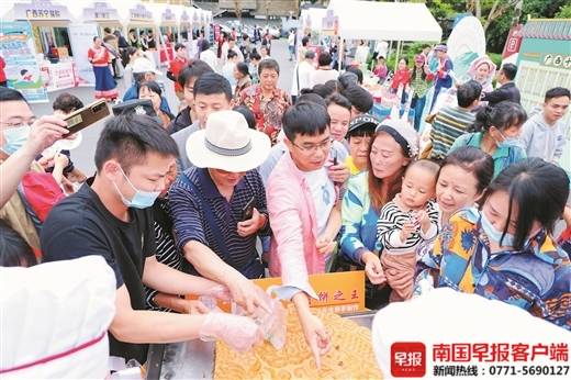 往届春尚大典现场,观众品尝大月饼。资料图片